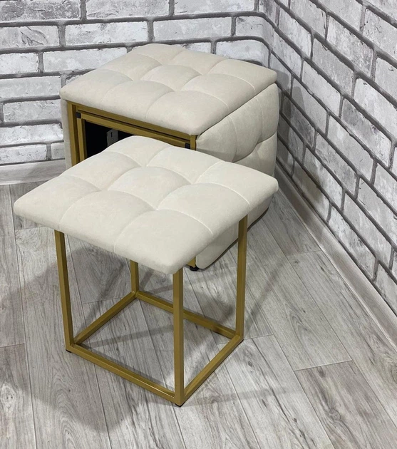 Пуф Vi-Tall 5 в 1 розкладний, комфорт, бежевий, велюр, каркас метал золото 50 х 50 х 50 см