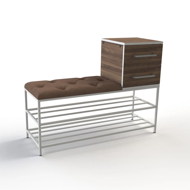 Банкетка-консоль з двома висувними ящиками Mzavod 100 см, Білий каркас, Коричнева тканина, Горіх каліфорнійський