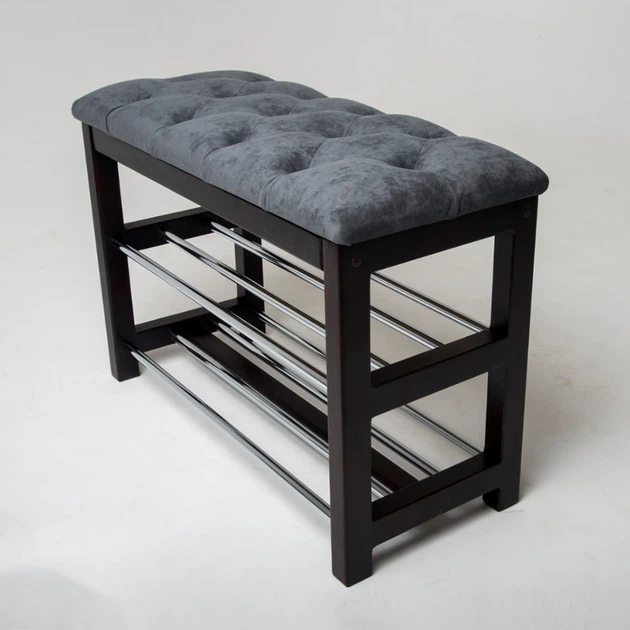 Банкетка з дерева HouseWood венге + сірий з поличками 70х30х45см ясен