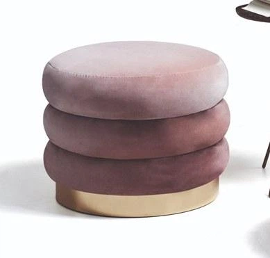 Пуф до туалетного столика MeBelle MARSHMALLOW 50 х 55 в передпокій, спальню, пудрово-рожевий велюр + золото