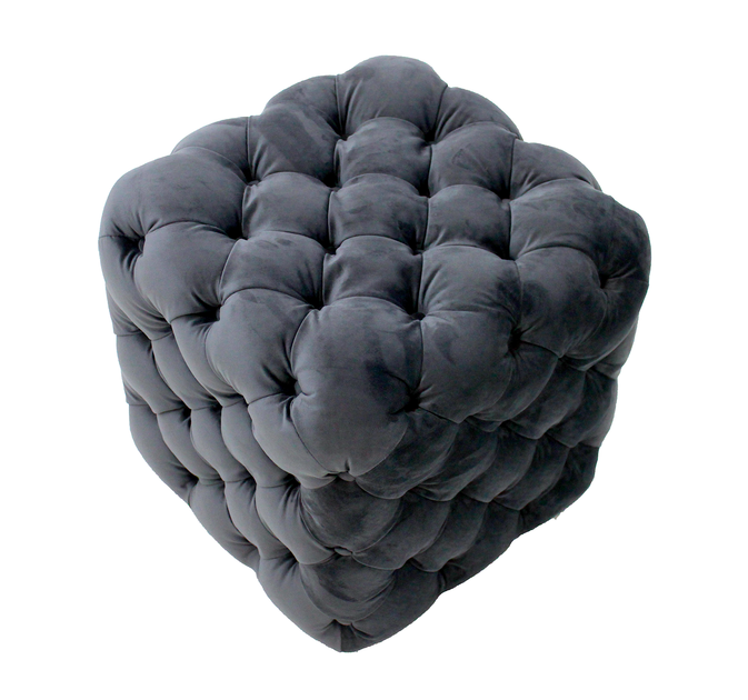 Пуф-кубик з каретною стяжкою MeBelle CUBIC 45 х 45 см у передпокій, темно-сірий графітовий велюр