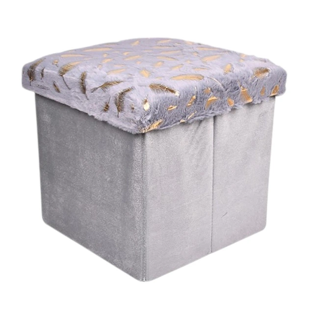 Тумба-пуф складана Stenson Golden dots фланелева з МДФ та ППУ знімний верх 35х35х33см Сірий (R33444)