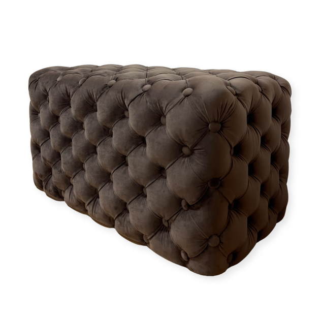 Банкетка в коридор передпокій MeBelle DOUBLE CUBIC 83х45х45 з каретною стяжкою м'яка, темно-коричневий велюр