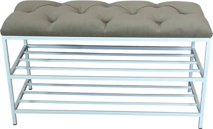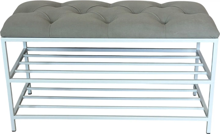 Банкетка з каретною стяжкою Metalzavod 80 см Білий каркас/Світло-сіра (LF-BLF80-KS-020600)