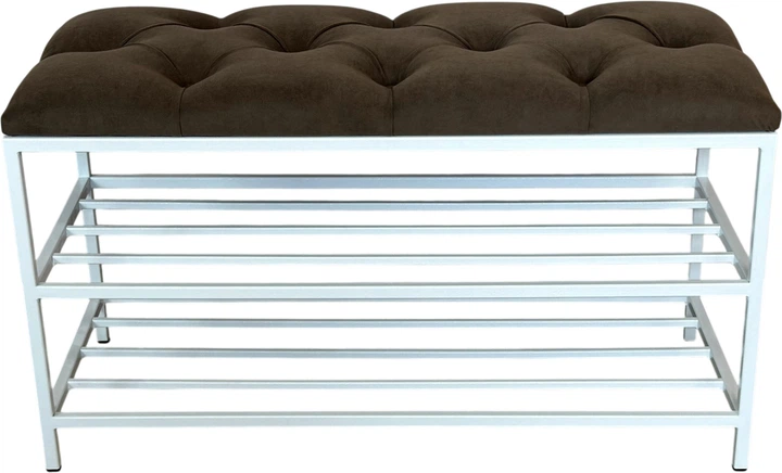 Банкетка з каретною стяжкою Metalzavod 80 см Білий каркас/Коричнева (LF-BLF80-KS-020100)
