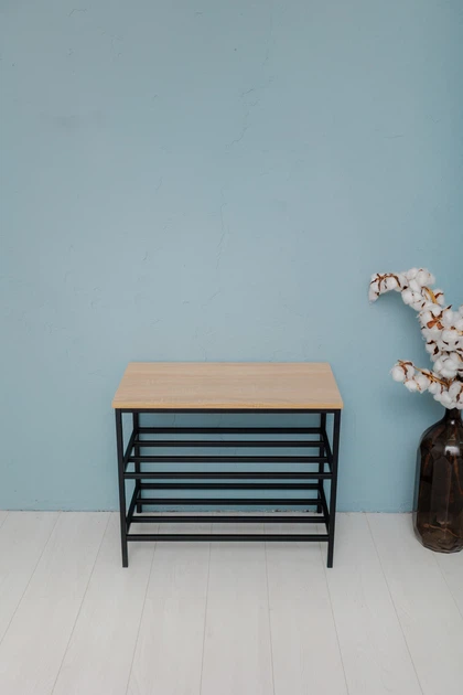 Банкетка для взуття з дсп сидінням 60*32*52 см колір чорний чорний каркас, підставка для взуття в коридор лавочка