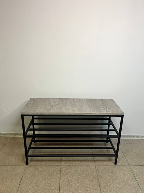 Банкетка для взуття з дсп сидінням 60*32*52 см колір бетон чорний каркас, підставка для взуття в коридор лавочка