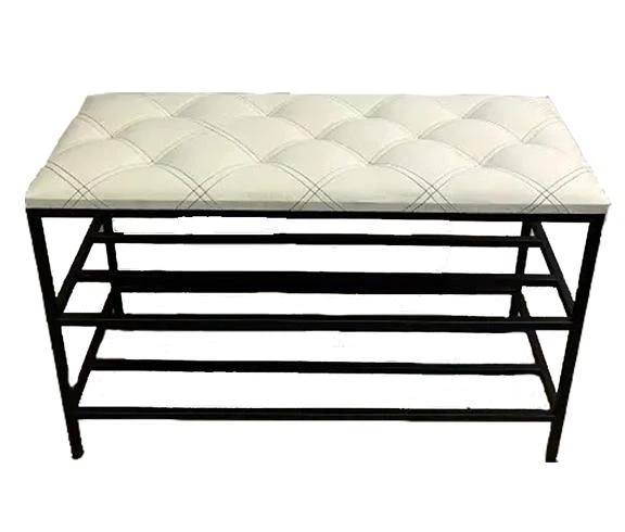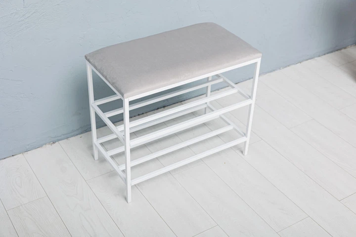 Підставка для взуття 60*32*52 см, м'яка велюрова банкетка 2 полички біла, пуф поличка для взуття прошита