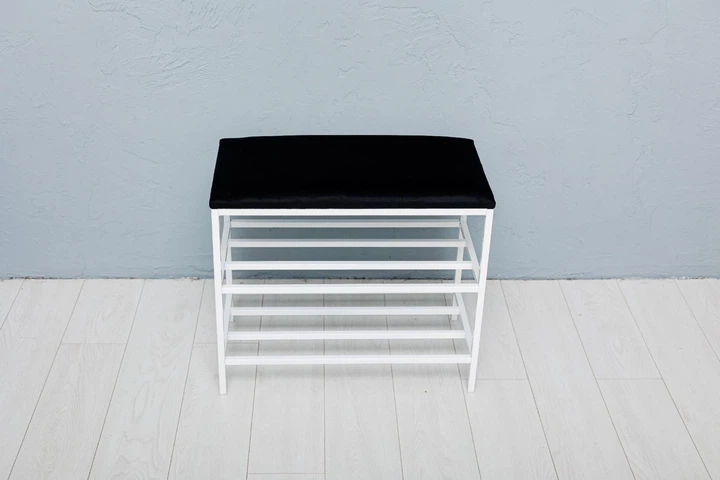 Банкетка для взуття в коридор передпокій полка поличка підставка пуфік стелаж полиця пуф лавка взуттєва м’яка велюрова чорна