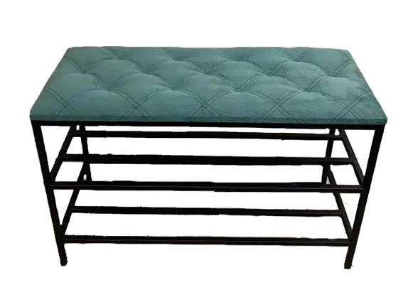 Підставка для взуття 60*32*52 см, м'яка велюрова банкетка 2 полички темно-бірюзова, пуф поличка для взуття прошита
