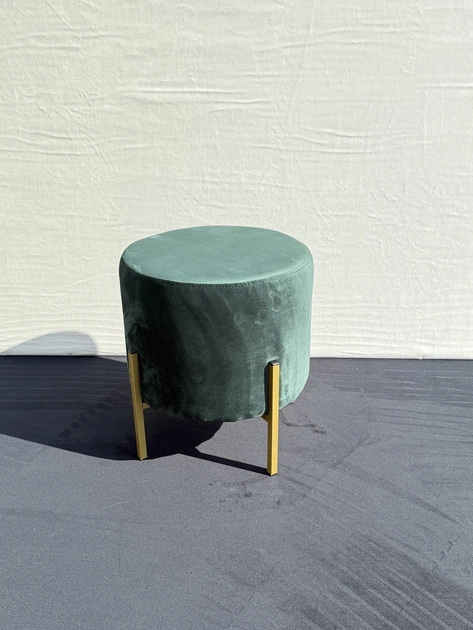Круглий пуф велюровий 38*38*42 см зелений, м'який пуф на металевих ніжках у коридор, передпокій