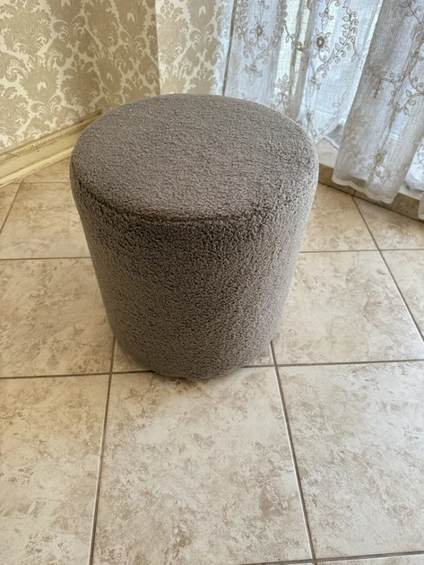 Круглий пуф з тканини тедді 38*42 см сірий, стильний пуф без ніжок круглий у коридор, спальню