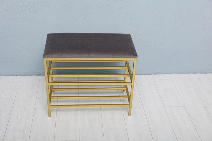 Підставка для взуття 60*32*52 см темно-сіра із золотистим каркасом, велюрова підставка для взуття на 2 полички