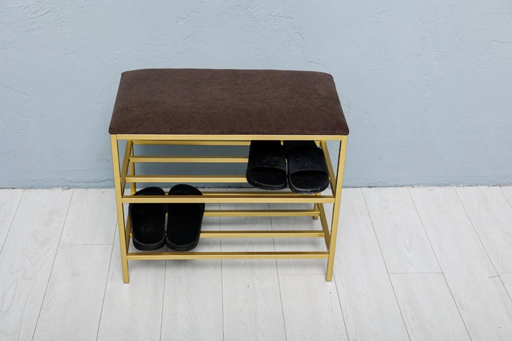 Підставка для взуття 60*32*52 см темно-коричнева із золотистим каркасом, велюрова підставка для взуття не прошита