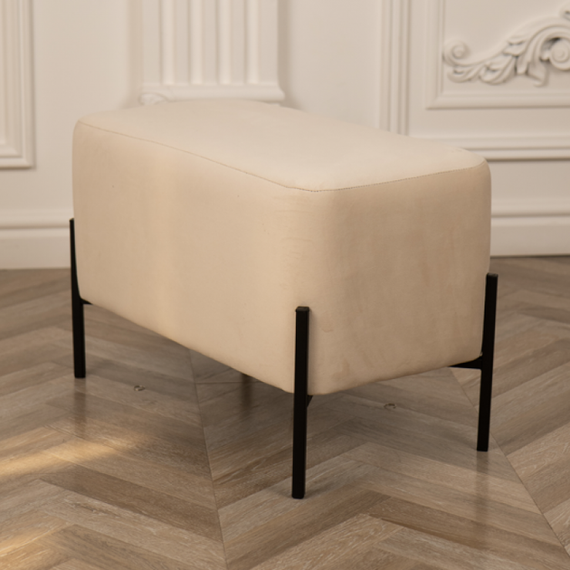 М'який пуф 43*34*42 см велюровий бежевий, пуф банкетка на металевих ніжках у передпокій, коридор, у салон
