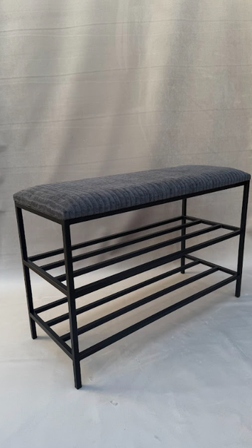 Підставка для взуття 80*32*52 см темно-сіра з чорним каркасом, вельветова підставка для взуття на 2 полички