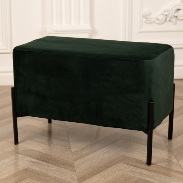 М'який пуф 43*34*42 см велюровий смарагдовий, довгий пуф банкетка на металевих ніжках у передпокій