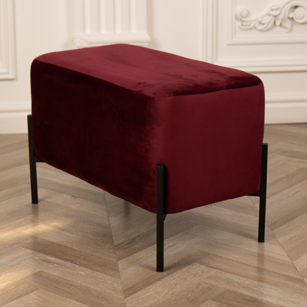 М'який пуф 43*34*42 см велюровий бордовий, пуф банкетка на металевих ніжках у передпокій, коридор, у салон
