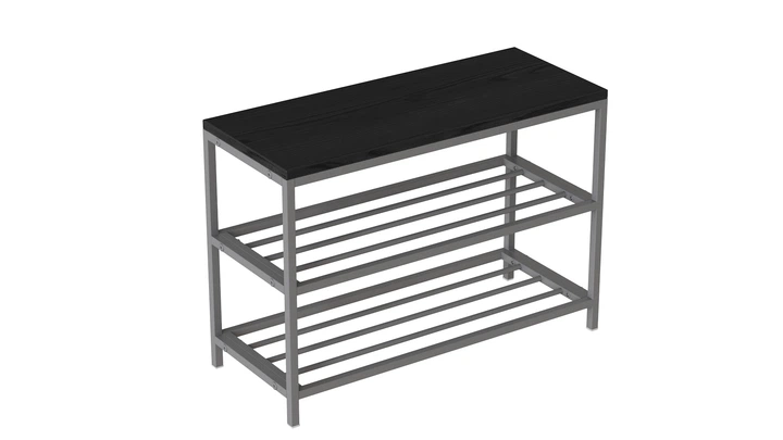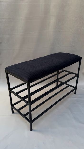 Підставка для взуття 80*32*52 см чорна з чорним каркасом, вельветова підставка для взуття на 2 полички