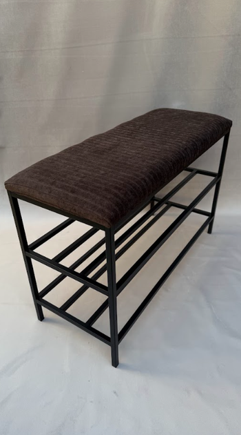 Підставка для взуття 80*32*52 см темно-коричнева з чорним каркасом,вельветова підставка для взуття на 2 полички