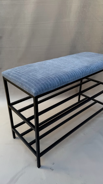 Підставка для взуття 80*32*52 см синя з чорним каркасом, вельветова підставка для взуття на 2 полички
