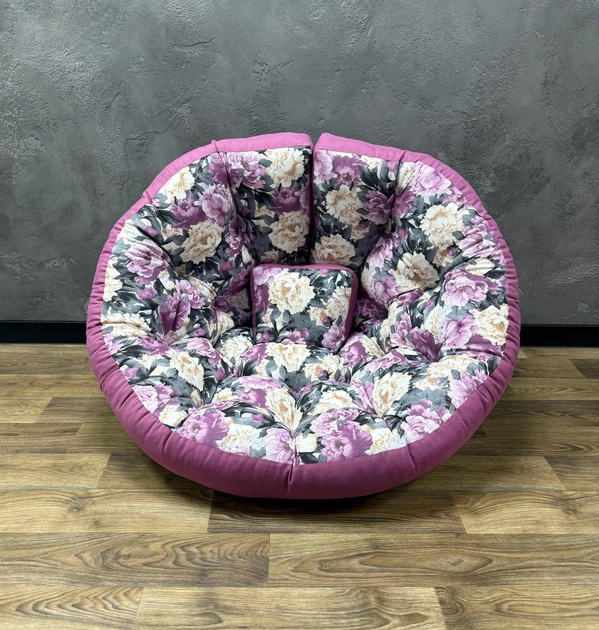 Безкаркасне крісло-матрац трансформер панама Ashen flowers 160х80 см фіолетове