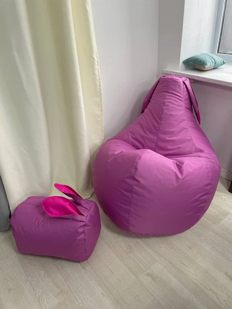 Крісло мішок груша S Оксфорд фіолетовий пуф зайчик