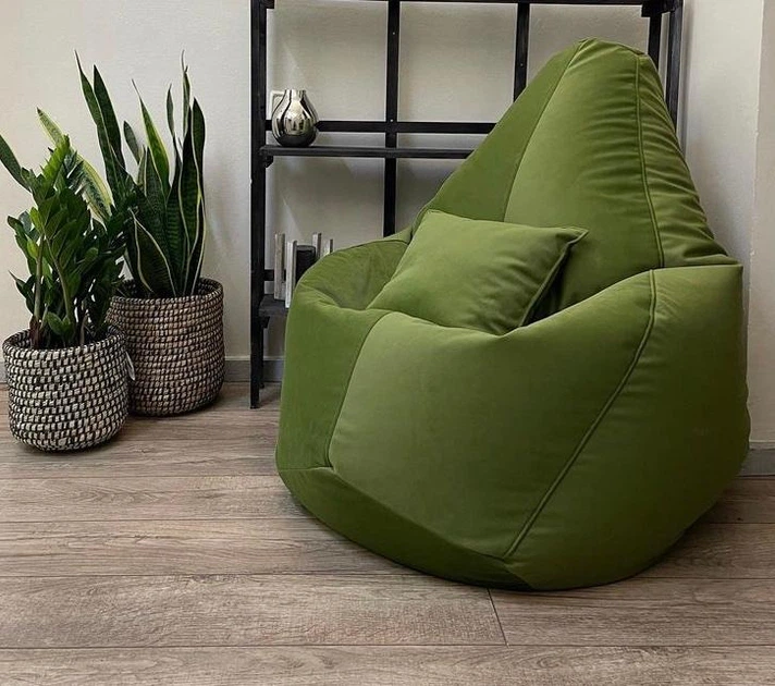 М'яке безкаркасне дитяче крісло пуф АртДекор Груша діаметром 70 см тканина оливкова велюр