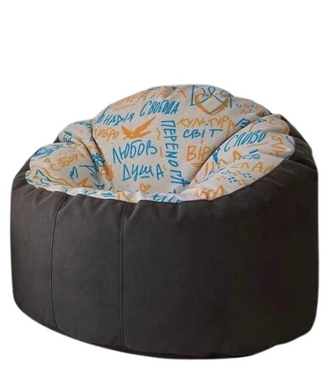 Безкаркасне крісло мішок для дому і офісу Лайн Інь 90 см колір темно-сірий з українським принтом