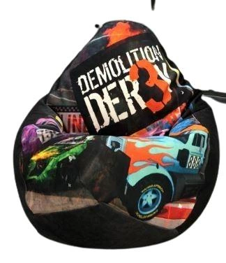 Крісло мішок у формі груші XL Лайн Тачки ширина 85 см чорне з принтом автомоблів