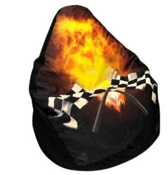 Крісло мішок у формі груші XL Лайн Фаєр ширина 85 см чорне з принтом вогню