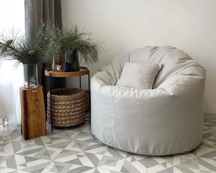 Безкаркасне крісло мішок для дому і офісу Лайн Інь 90 см колір молочний