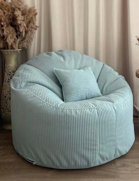 Крісло мішок у формі груші XL Лайн Пуф ширина 85 см велюр блакитний
