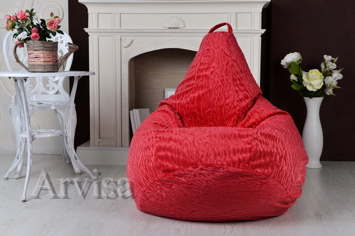 Кораловое велюрове Безкаркасне Крісло мішок груша пуфик XL (120х75)
