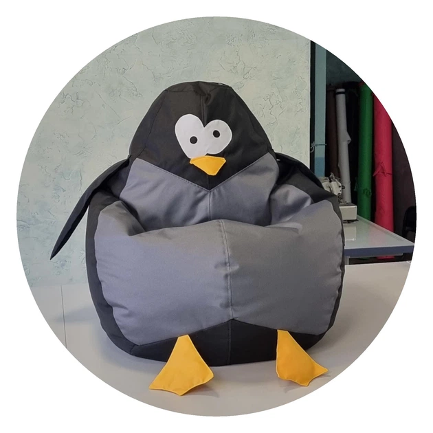 Крісло мішок груша Пінгвін Softly Широка XXXL 150x120 Сірий та чорний Оксфорд 600 D PU