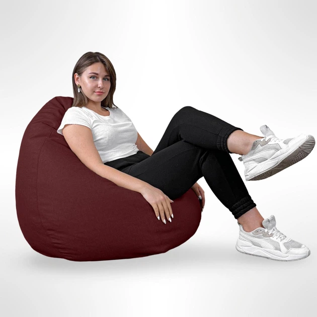 Крісло мішок груша Овал Moodsy Рогожка XL 105x85 Бордовий