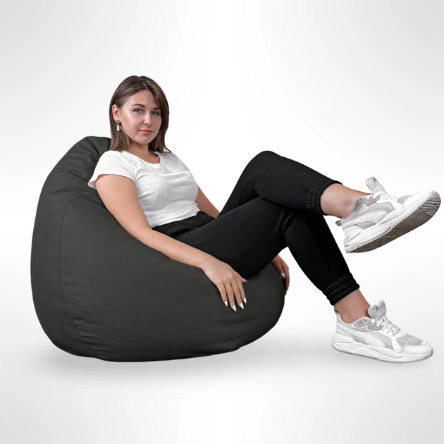 Крісло мішок груша Овал Moodsy Рогожка XL 105x85 Темно-Сірий