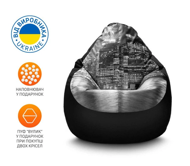 Крісло груша iPuff "Нью Йорк" Флок XXXL (100х135 см) Чорний