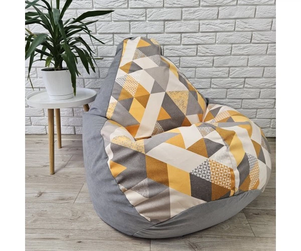 Крісло-груша велюр "Геометрія" сіра KatyPuf L 100x75