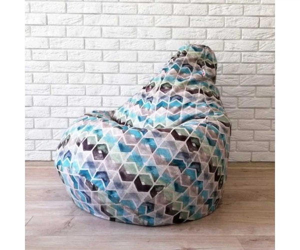 Крісло-груша велюр "Геометрія" бірюзова KatyPuf L 100x75