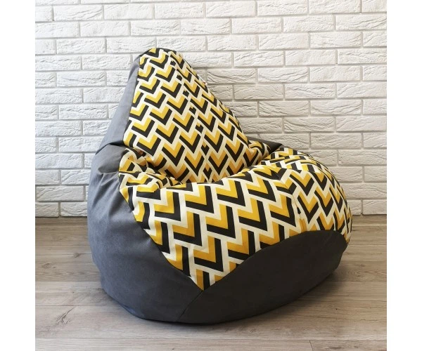 Крісло-груша велюр з принтом "Жовтий зигзаг" KatyPuf XL 125x90