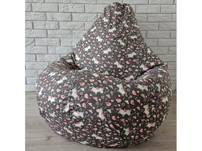Крісло-груша бавовна Єдиноріг на сірому фоні, KatyPuf (XXL 140x100)