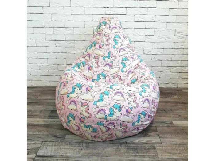 Крісло-груша бавовна рожевий Єдиноріжки, KatyPuf (XXL 140x100)