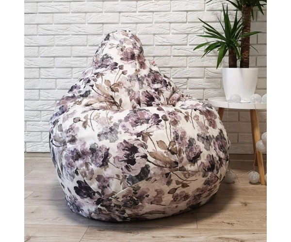 Крісло-груша велюр з принтом "Бежева акварель" KatyPuf XXL 140x100
