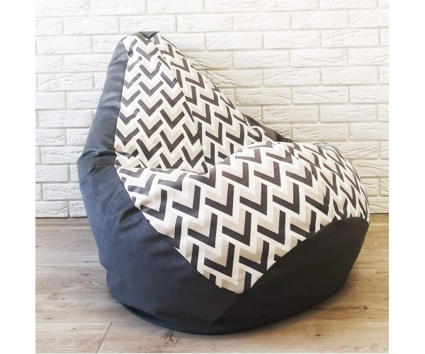Крісло-груша велюр з принтом "Чорний зигзаг" KatyPuf XXL 140x100