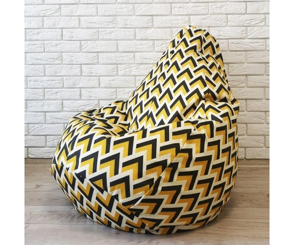 Крісло-груша велюр з принтом "Жовтий зигзаг" KatyPuf XXL 140x100