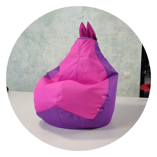 Крісло мішок груша Зайчик Softly Широка XXL 130x110 Рожевий фіолетовий Оксфорд 600 D PU