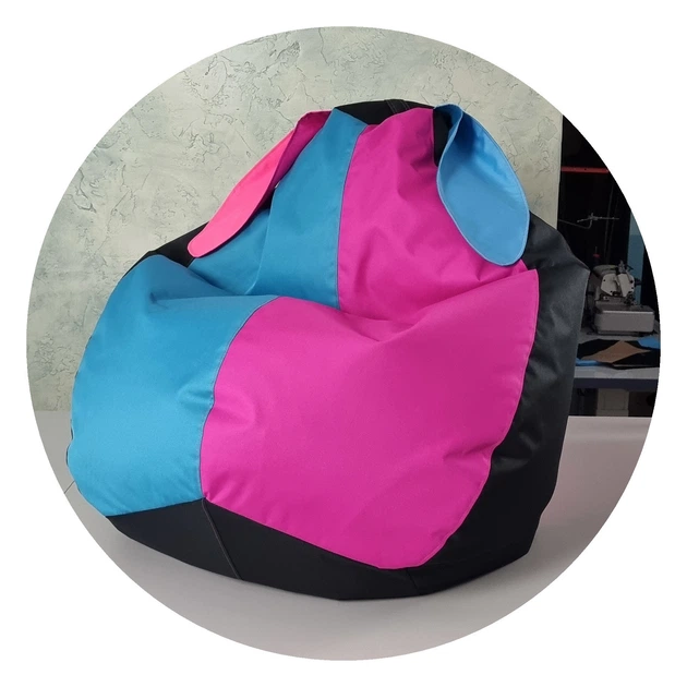 Крісло мішок груша Зайчик Softly Широка XL 110x90 Бірюза рожевий чорний Оксфорд 600 D PU