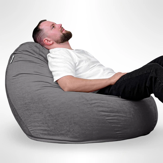 Крісло мішок груша Овал Moodsy Велюр XXL 130x90 Сірий