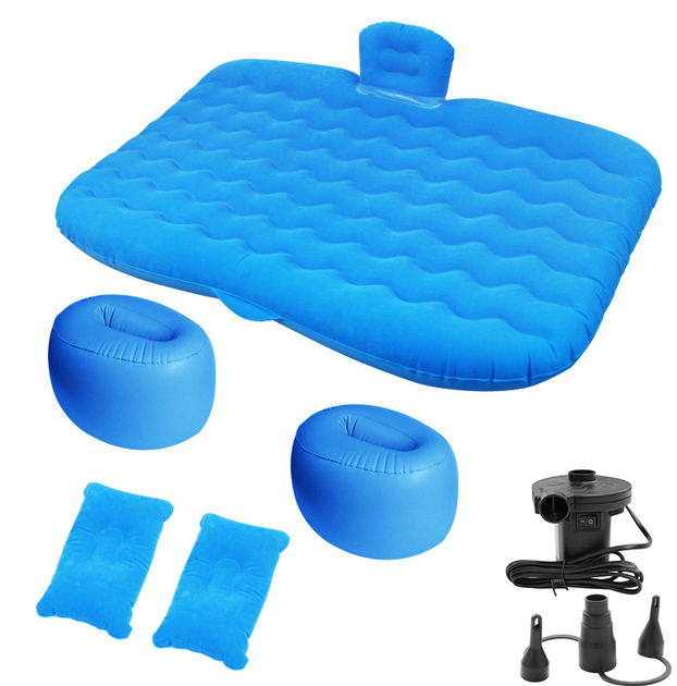 Надувний автомобільний матрац KT7001913 синього кольору для заднього сидіння з подушками